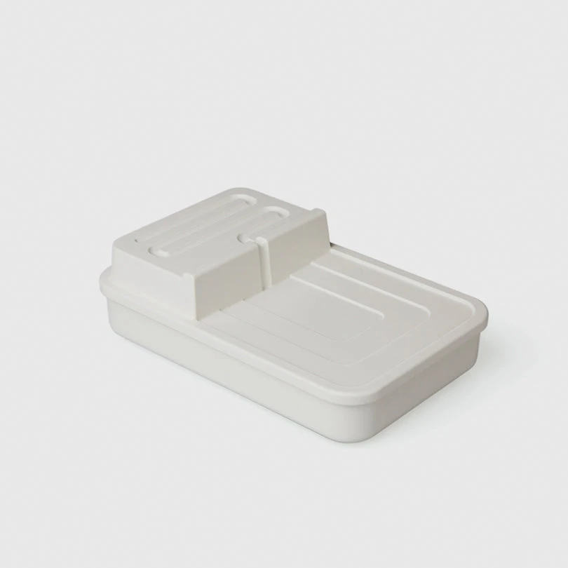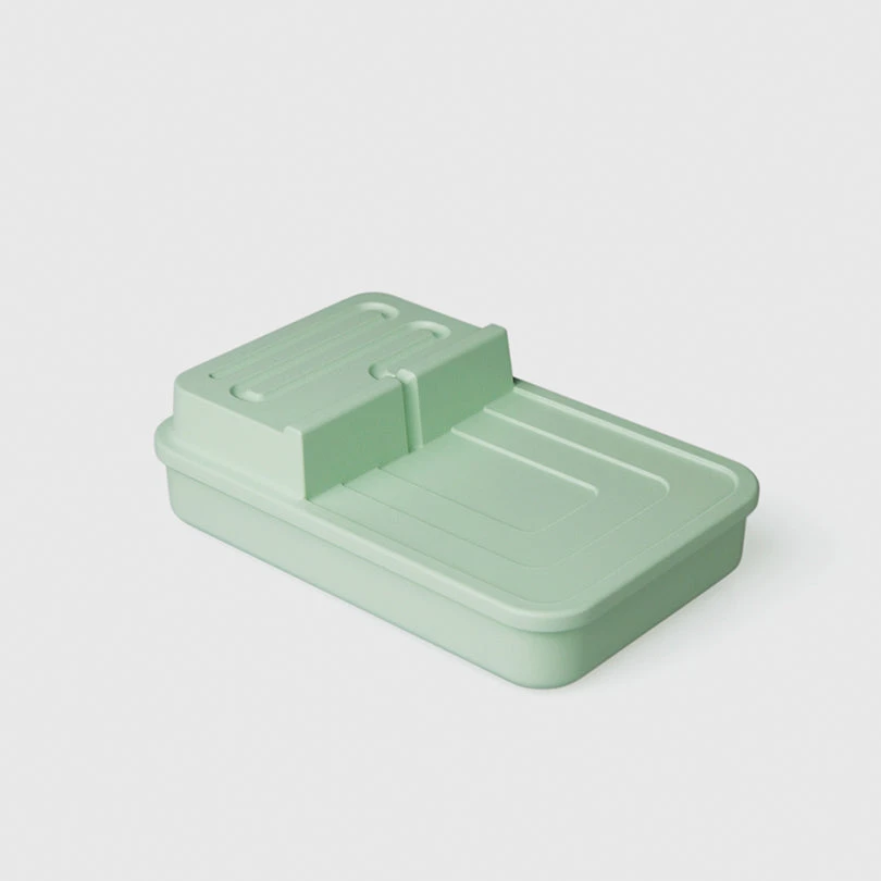 Waterfall is divided into two levels of elevations that are wide and useful. The meander river on highland is engraved for preventing cylinder objects, such as screws or lipsticks, from sliding, while the lower lake is good for placing larger items, for example, keys, tools, lighters and even a wallet.