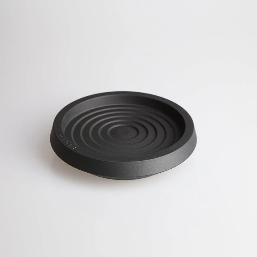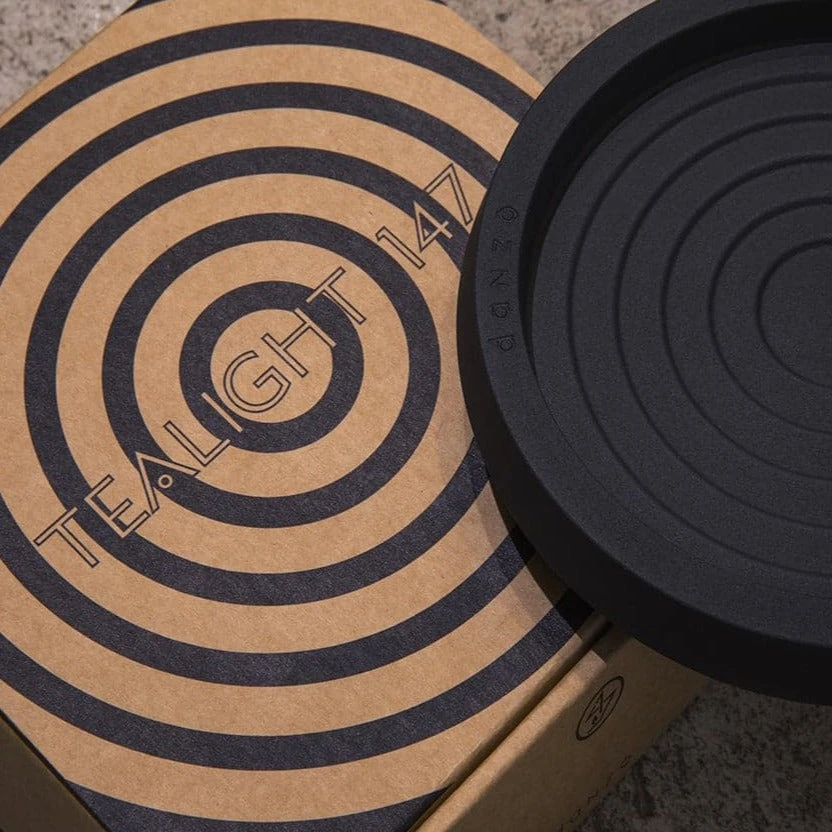 Tealight 147 is inspired by the idea of making luminous intensity of candlelight literally dimmable. The reversable dish-shaped holder, featuring concentric rings engraved on the bottom, can hold candles individually or in groups of 4 or 7 (see picture). Also works as a steady plate for larger candles in different sizes. Available in lava black and meteor silver.