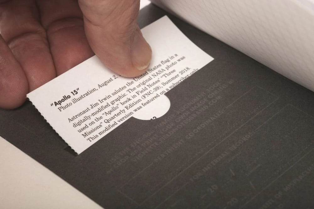 The “theme” of these books is completely up to you. Maybe it’s a photo of your crew, your kids, or your pup? Possibly a screen grab from your favorite movie, cartoon, or tv show? Will it be a masterpiece by a famous artist, or one by your not-yet-famous toddler? A team logo, vacation selfie, literary hero, pop star… or just that sweet photo you took of the full moon. Yeah, that’d work great. Field Notes have noticed how people customize their notebook covers with a sticker, title, sketch, or stamp, so the “Vignette” Edition makes that sort of personalization quick and easy, resulting in a very slick finished product.