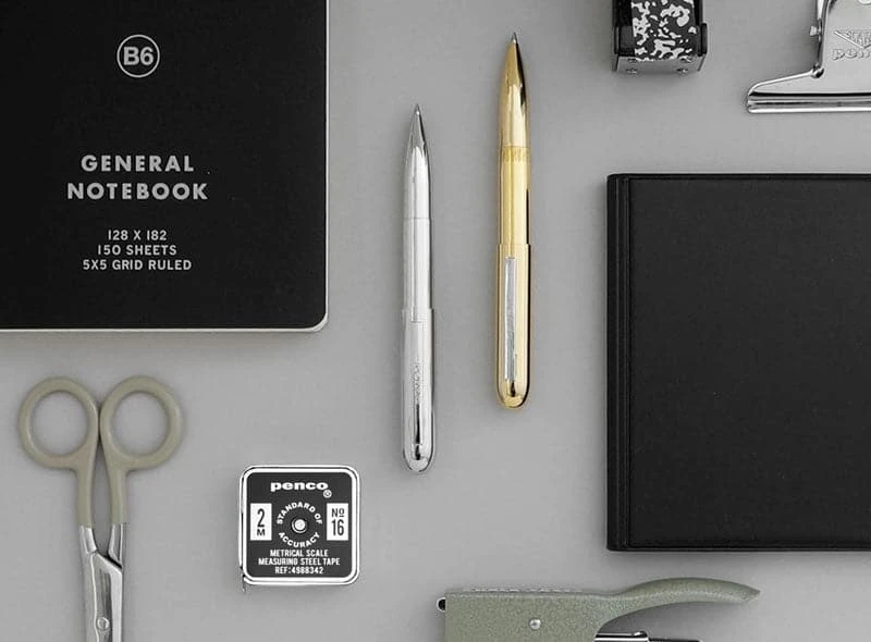 Penco’s original Bullet Pen is both stylish and practical, making it a perfect every day carry ballpoint pen. The beautiful design is manufactured in Japan from solid brass. When capped it is only 9.3cm long but it can extended to a comfortable writing size when posted. The Penco Bullet Pen is also available in silver