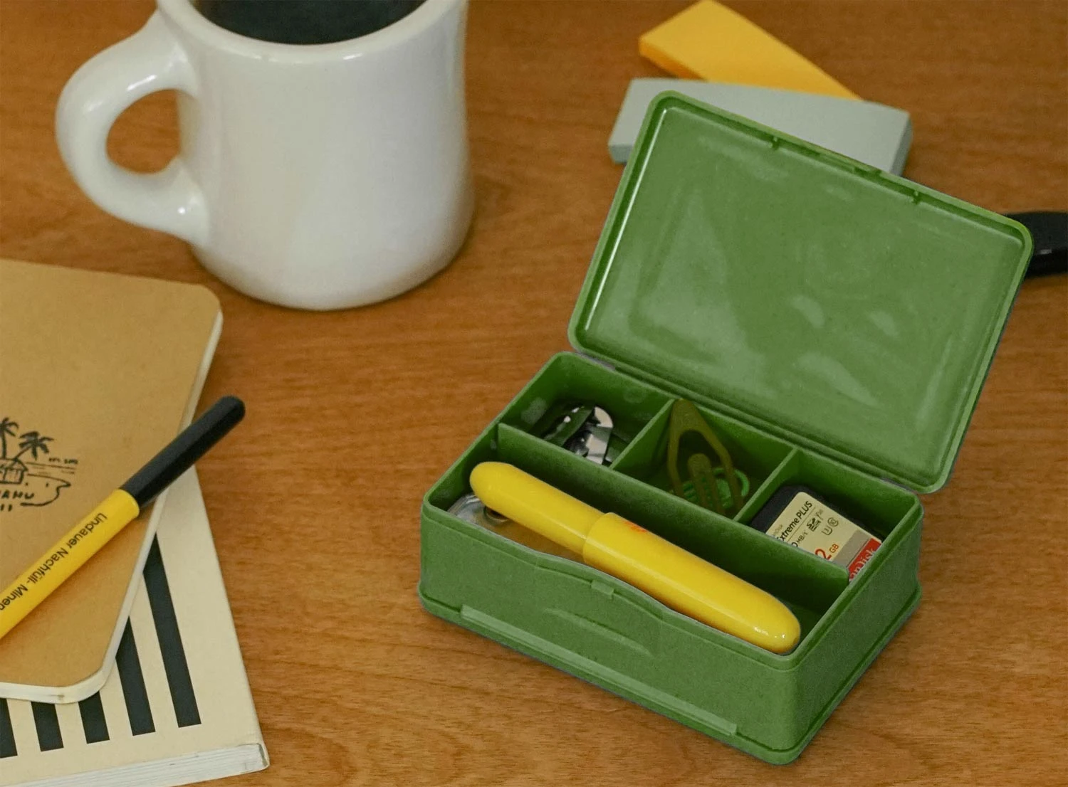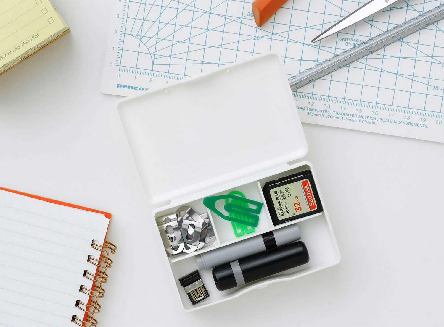 The Hightide Penco Double-Sided Storage Container is a multifunctional and compact storage solution, ideal for organising and securing small items such as medicine, accessories, clips, SD cards, and more. One side boasts four compartments, whilst the other, devoid of partitions, can store up to 40 business or other cards. Its palm-sized dimension makes it a convenient carry-on accessory for everyday use or travel.