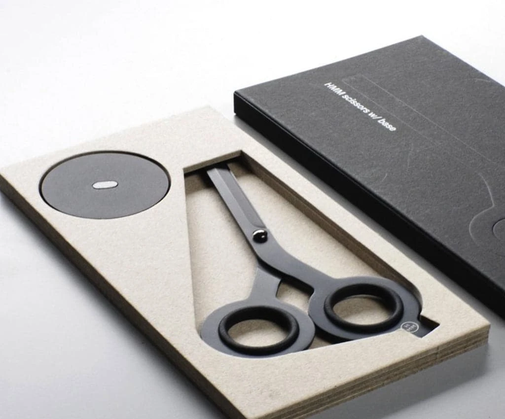 These scissors come with a sleek, minimalist base. The custom-made magnet keeps the square-tip scissors on a firm base while displaying the product, giving it a sculptural feel.