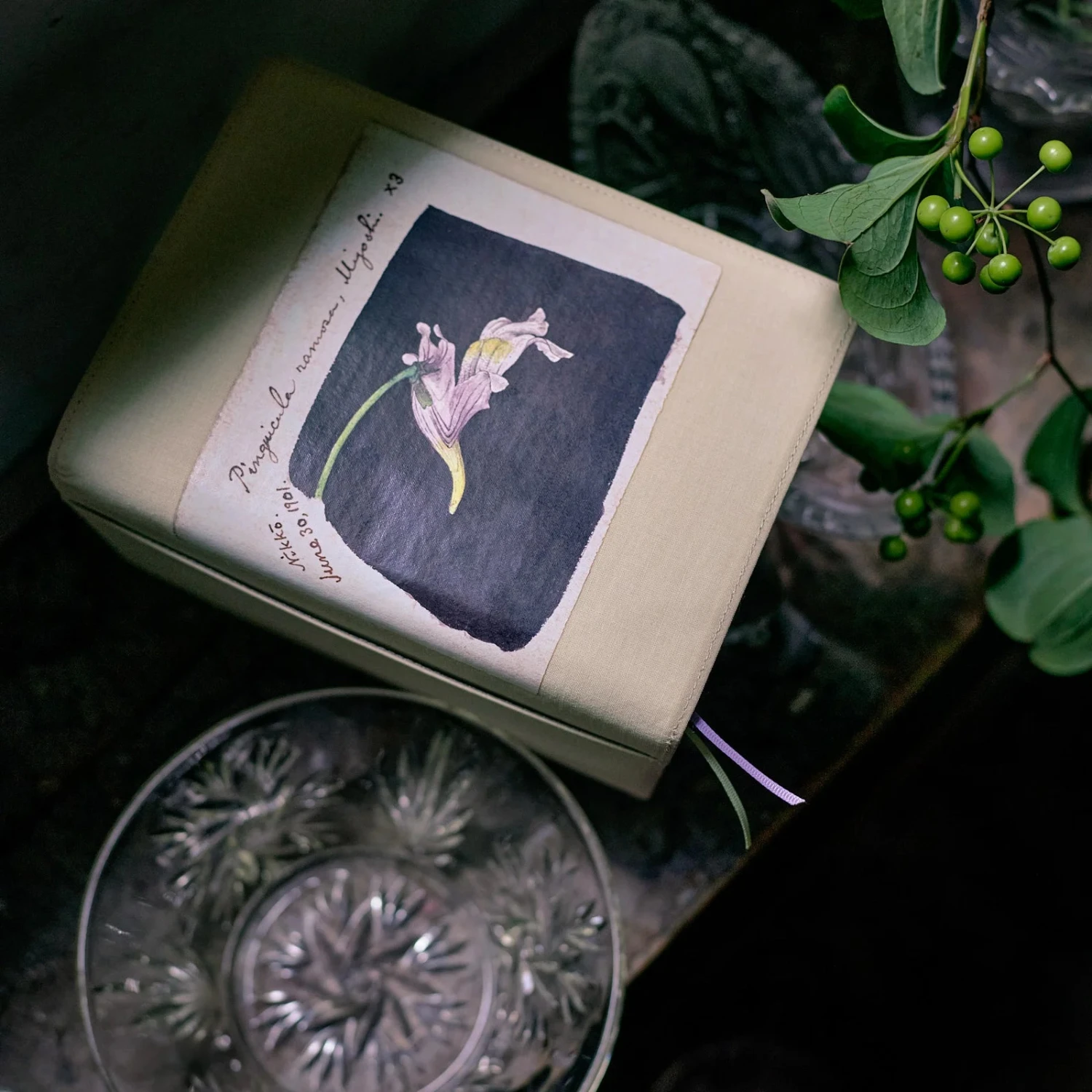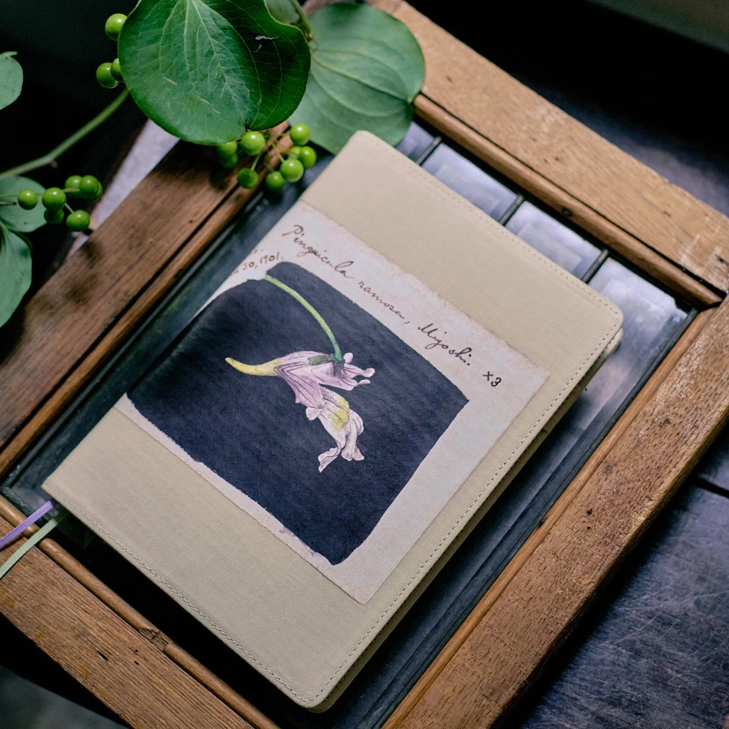 Written at the bottom of the cover interior is ‘Pinguicula ramosa’, the scientific name for Koshinso.![Hobonichi 2024 A5 Planner Cover [Tomitaro Makino: Koshinso] 22 Hobonichi 2024 A5 Planner Cover [Tomitaro Makino: Koshinso] -Stationery Sale Store](https://www.1101.com/store/techo/2024/detail_images/cc24_makino/extra_05.jpg)