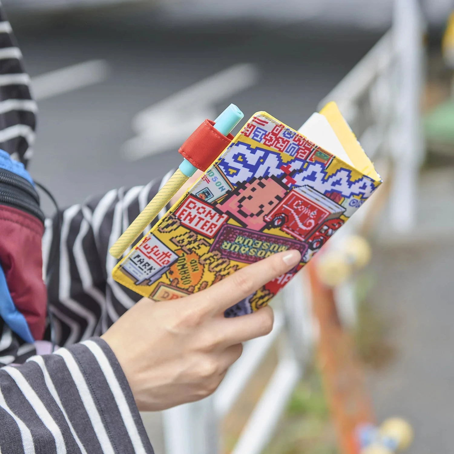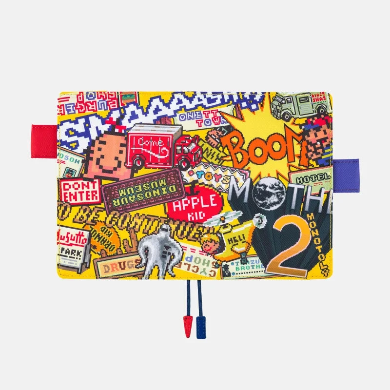 This cover design is based on Shigesato Itoi’s 1994 Super Nintendo game, MOTHER 2 (EarthBound in North America). The A6 size Attention! cover features pixel art of billboards you find around town, logos, typography, and other memorable characters from the game.