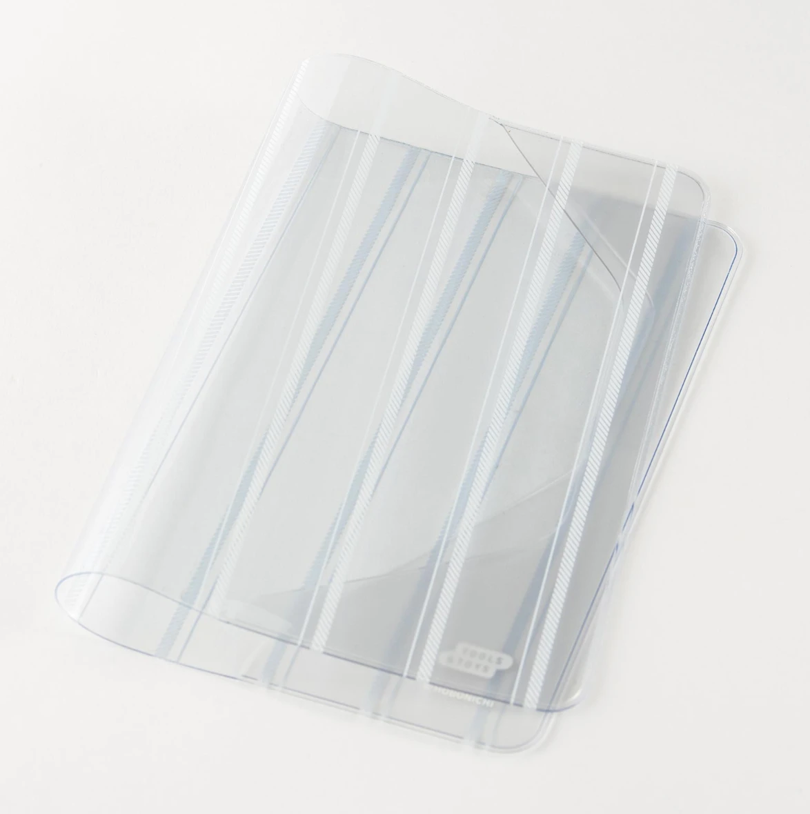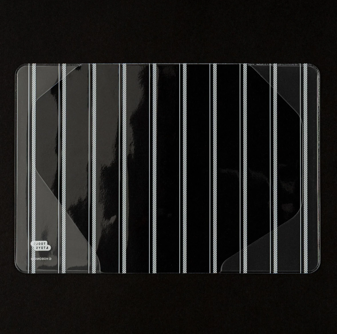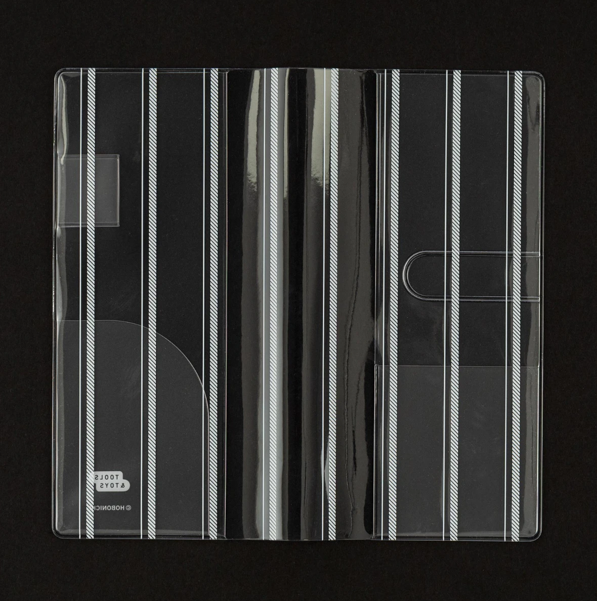 Cover on Cover is an optional, extra covering that fits select Hobonichi Techo covers to protect them from wear and tear. (Not for use directly on book.) The white stripes has a fresh feeling to it and is perfect for anyone looking to accent their simple techo cover by just a bit.