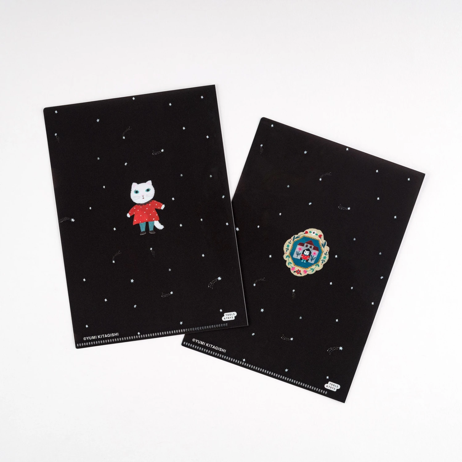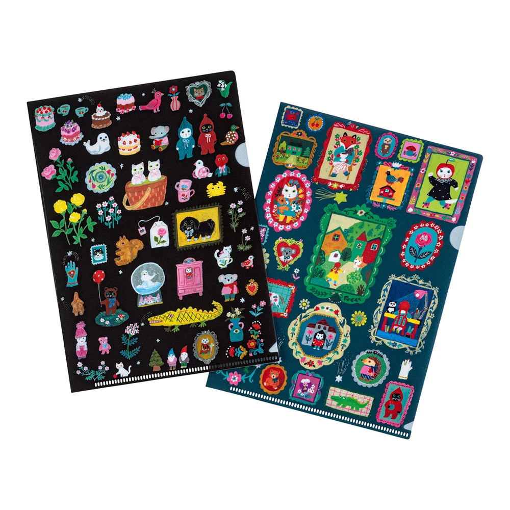 This set of 2 folders fits perfectly into the pockets of A5 size Hobonichi Techo covers. Two designs by illustrator Yumi Kitagishi were chosen for the set of 2.