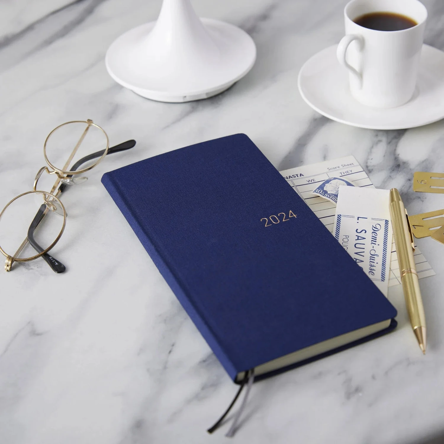 Deep Navy is navy in a deep tone, as the name suggests. The year 2024 on the cover is foil-pressed in gold, which shines in the light. The subtle colour can also be used on any occasion and for work.