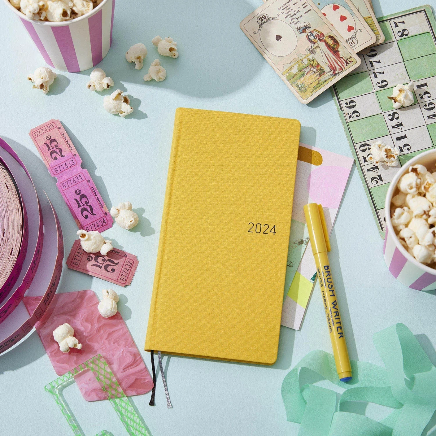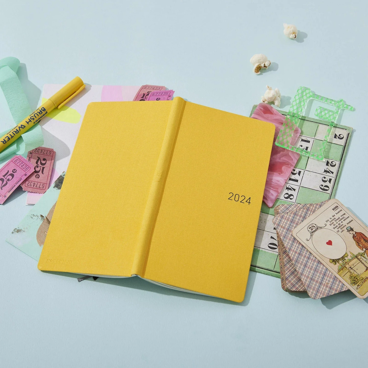 Poppin’ Yellow is a techo in creamy yellow. The year 2024 on the cover is foil-pressed in navy. The bright and fun colour will cheer you up whenever it catches your eye.