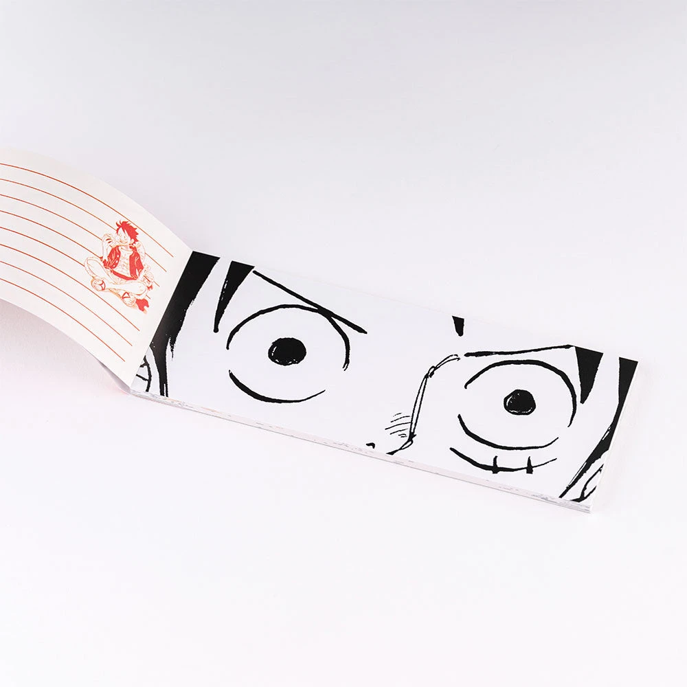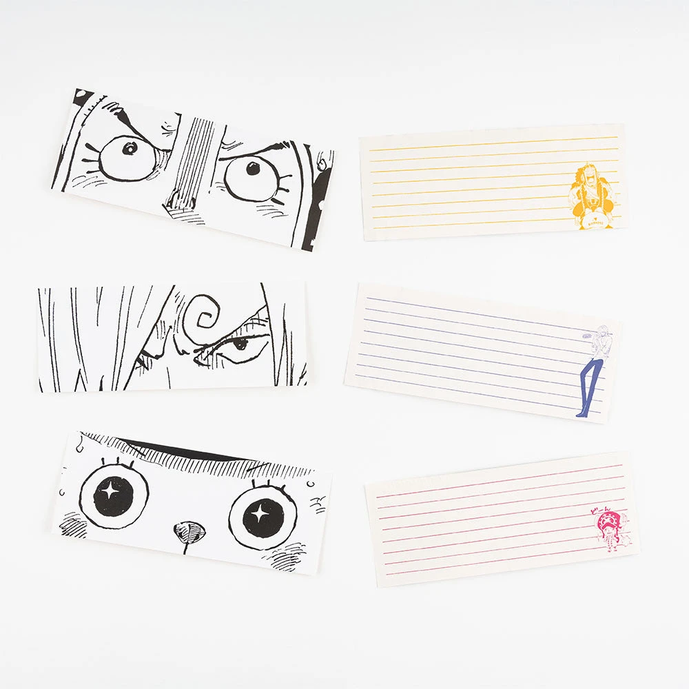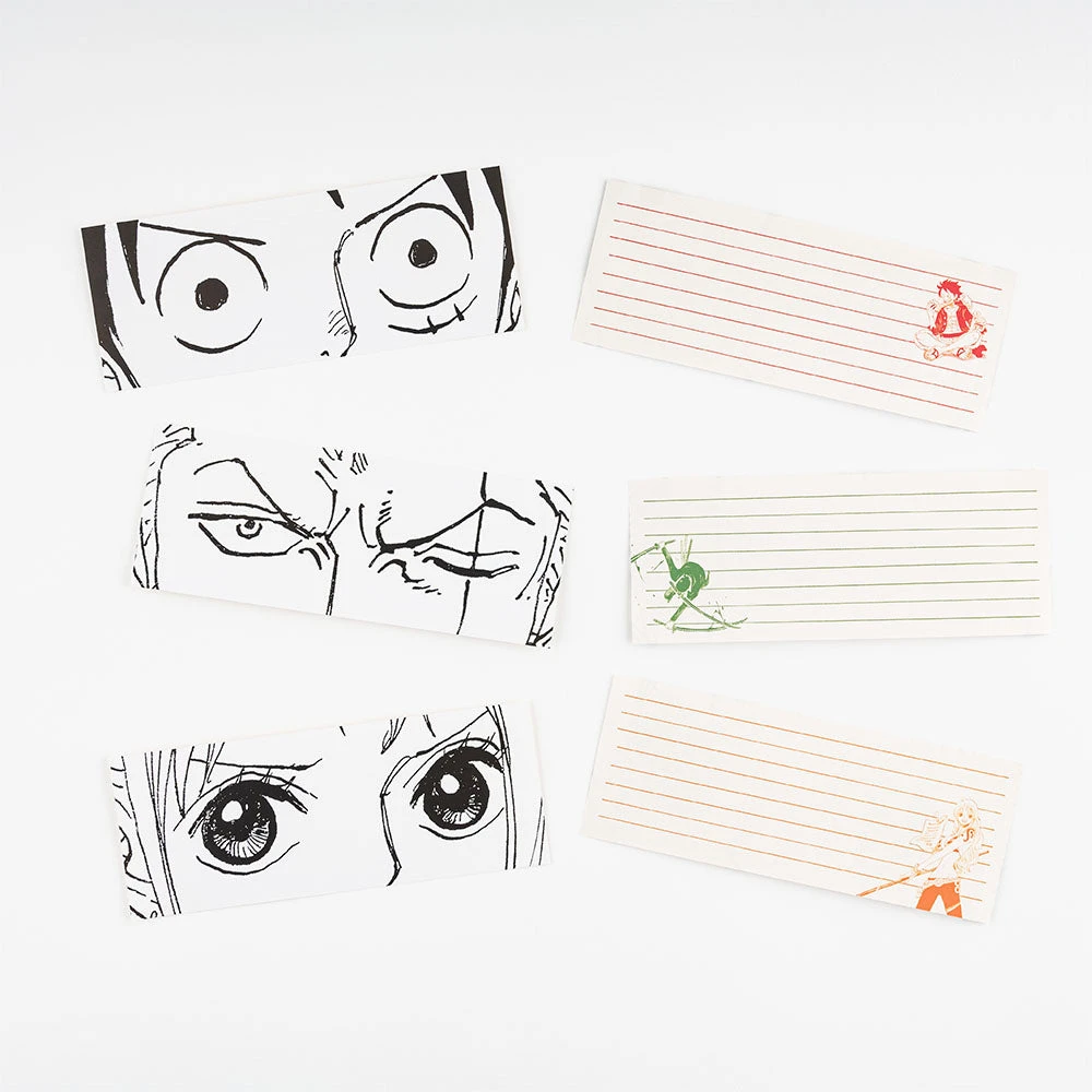 This bold letter set depicts the eyes of the main character Luffy and the rest of the ten Straw Hat Pirates on one half of each paper. You can play around with the paper by holding it up to your own face!