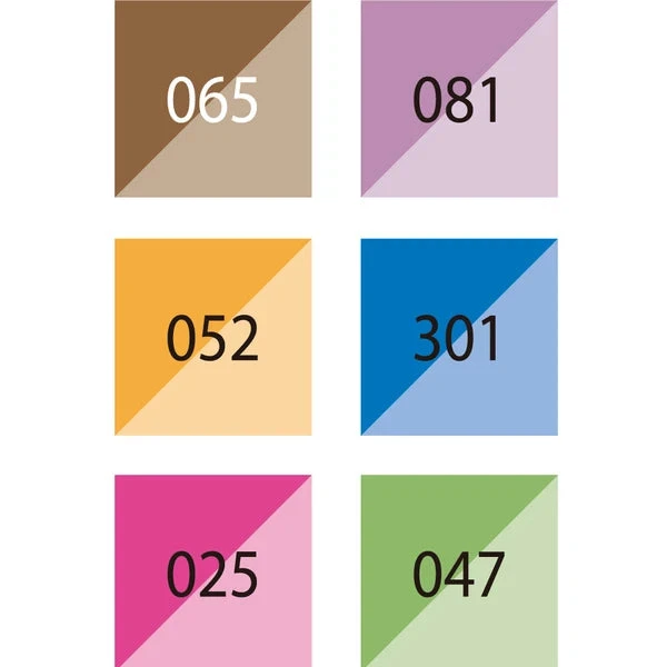 - Marker pen set with 6 bright colours: 065, 081, 052, 301, 025, and 047