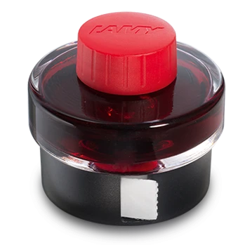 Lamy T 52 bottled ink, 50ml, comes with an in-built roll of blotting paper around the base and ink residue collecting basin for effortless and mess-free refilling of your fountain pen. Available in a variety of colours and specifically engineered to suit Lamy fountain pens.
