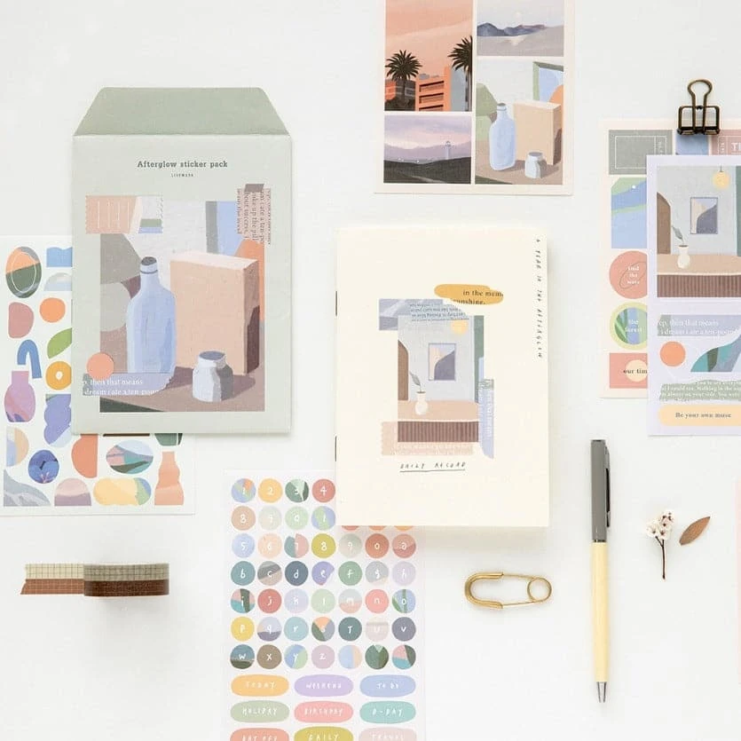 Livework Afterglow Stickers are meant to leave a calming aftertaste in your every day life. Inspired by the colours of nature, these stickers are perfect for decorating diaries and journals while being aesthetically pleasing.