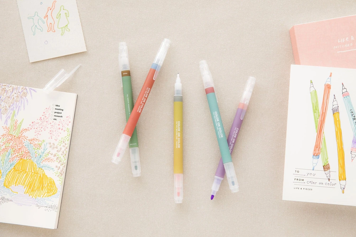 This set of 5 Livework Twin Plus Pens with “vintage” colours is perfect four bullet journaling, sketches, and colouring books. Each pen features a fine and a slightly broader tip, each with an individual colour. We particularly like the retro design and muted colours of these twin tip pens.