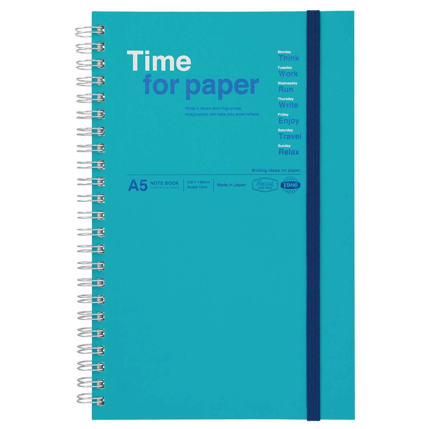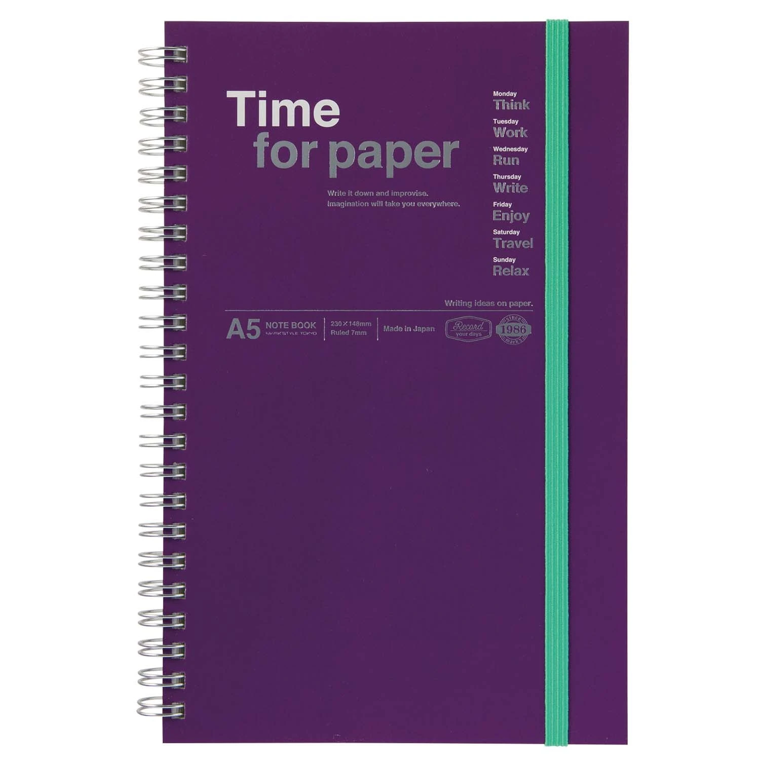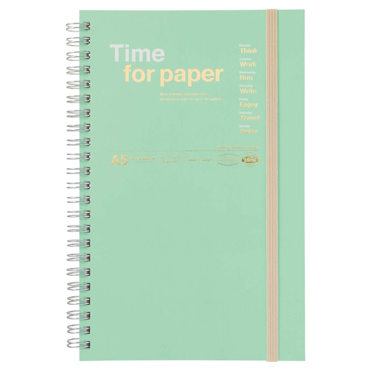 Made with high-quality writing paper in Japan, this A5 notebook closes with the use of a band which makes the Time for Paper notebook the perfect companion to take quick notes on the go. The notebook is spiral bound so it opens flat (our favourite type of notebook!) and gives you the freedom to spread out a bit when writing without having to worry about keeping your notebook open with clips.