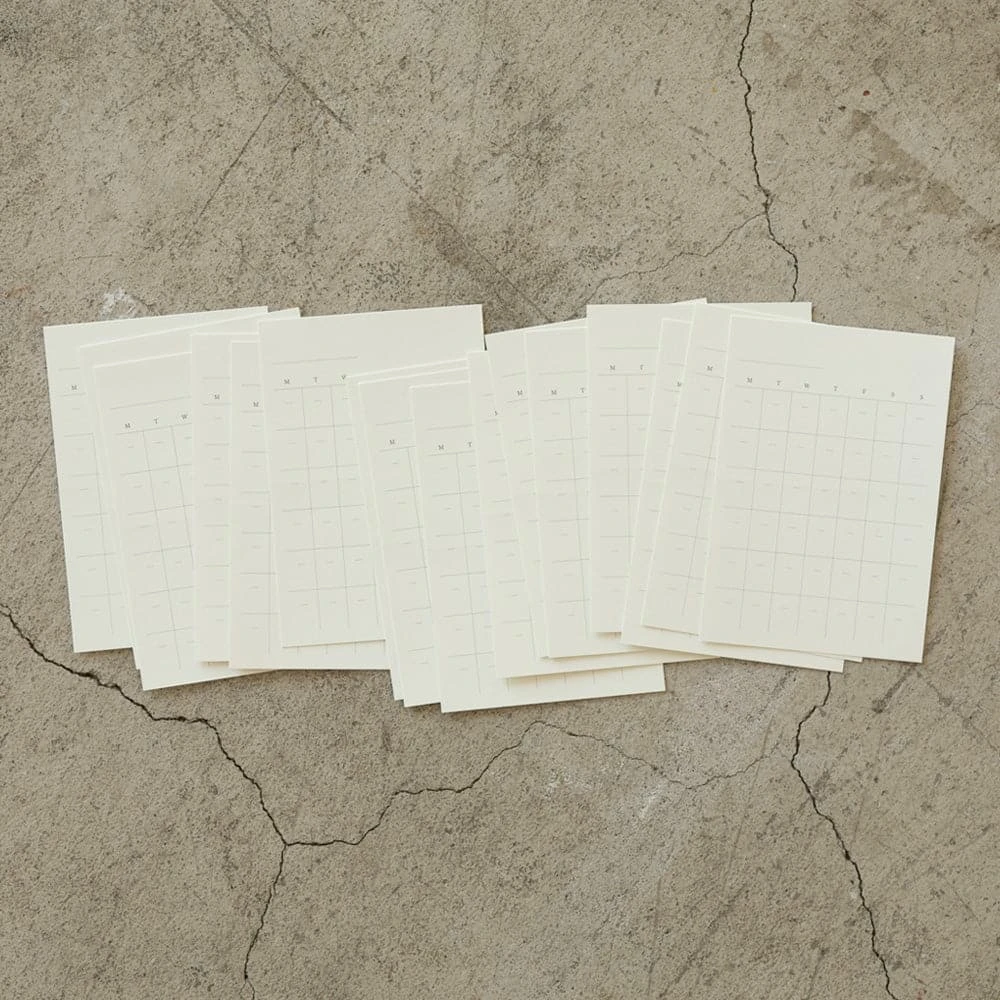 The MD Diary Sticker Free is a set of 16 blank month-long block calendar stickers. The sticker paper is made of MD PAPER (Cream).
