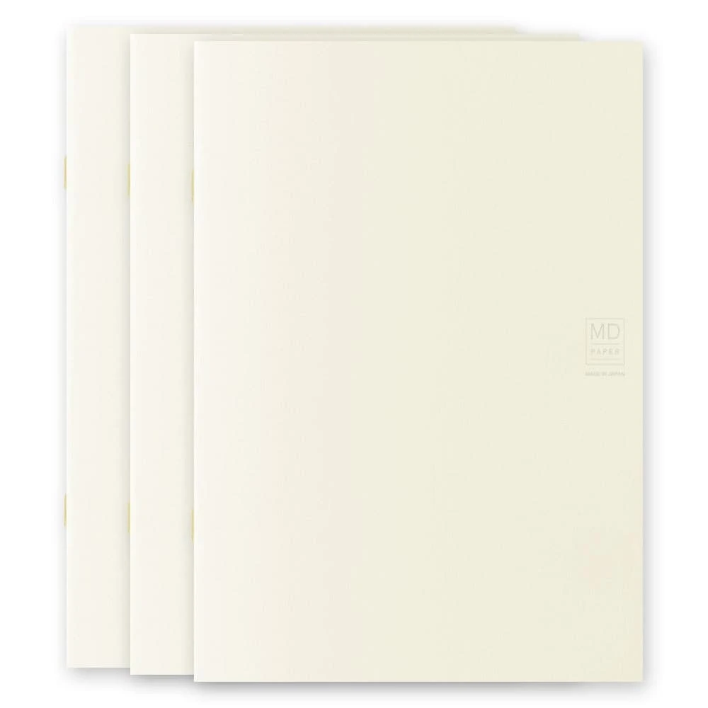 A set of 3 thin, easy to carry MD notebooks in a convenient A5 size featuring a minimalist design. Made in Japan.