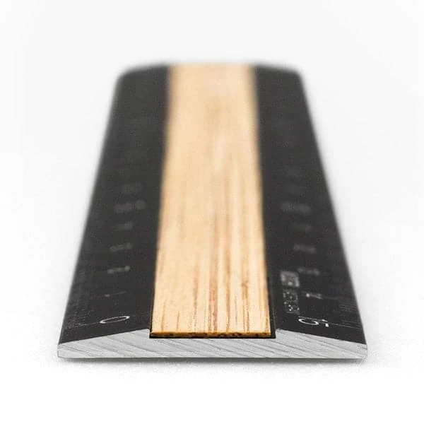 A stylish 15cm ruler made of aluminium and bamboo.
