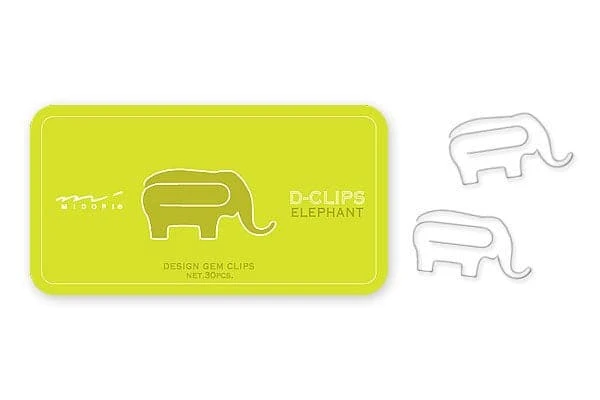Elephant shaped paper clips from the Midori D Clips range. These are one of our most popular items. A Japanese stationery classic!