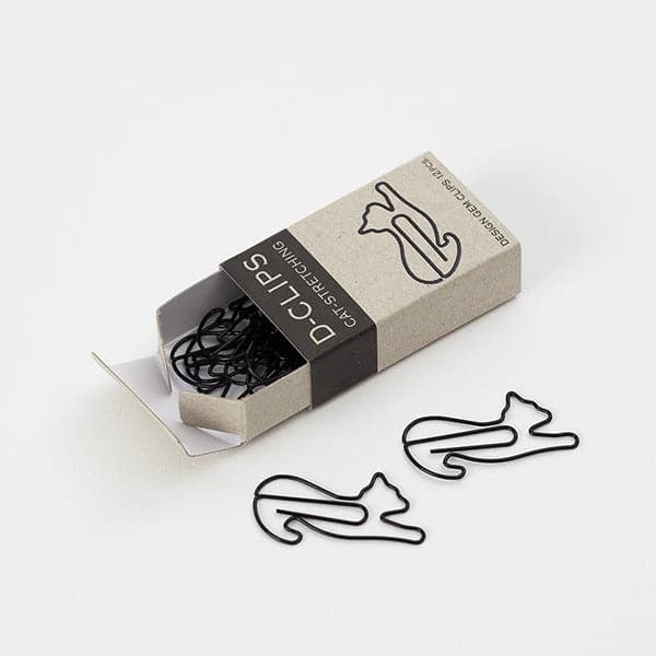Enjoy using these cute little Midori D-Clip Mini paperclip sets, which create a silhouette of a stretching cat.