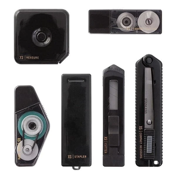 Keep all your Midori’s XS stationery collection together with this super cute stationery kit. Inside the lovely and practical case you will find 6 items: XS scissors, XS stapler, XS correction tape, XS cutter, XS tape measure and XS glue tape. These items are also sold individually. The XS Stationery Kit is available in four colours: black, white, pink and blue. Perfect both as a desk or travel accessory.