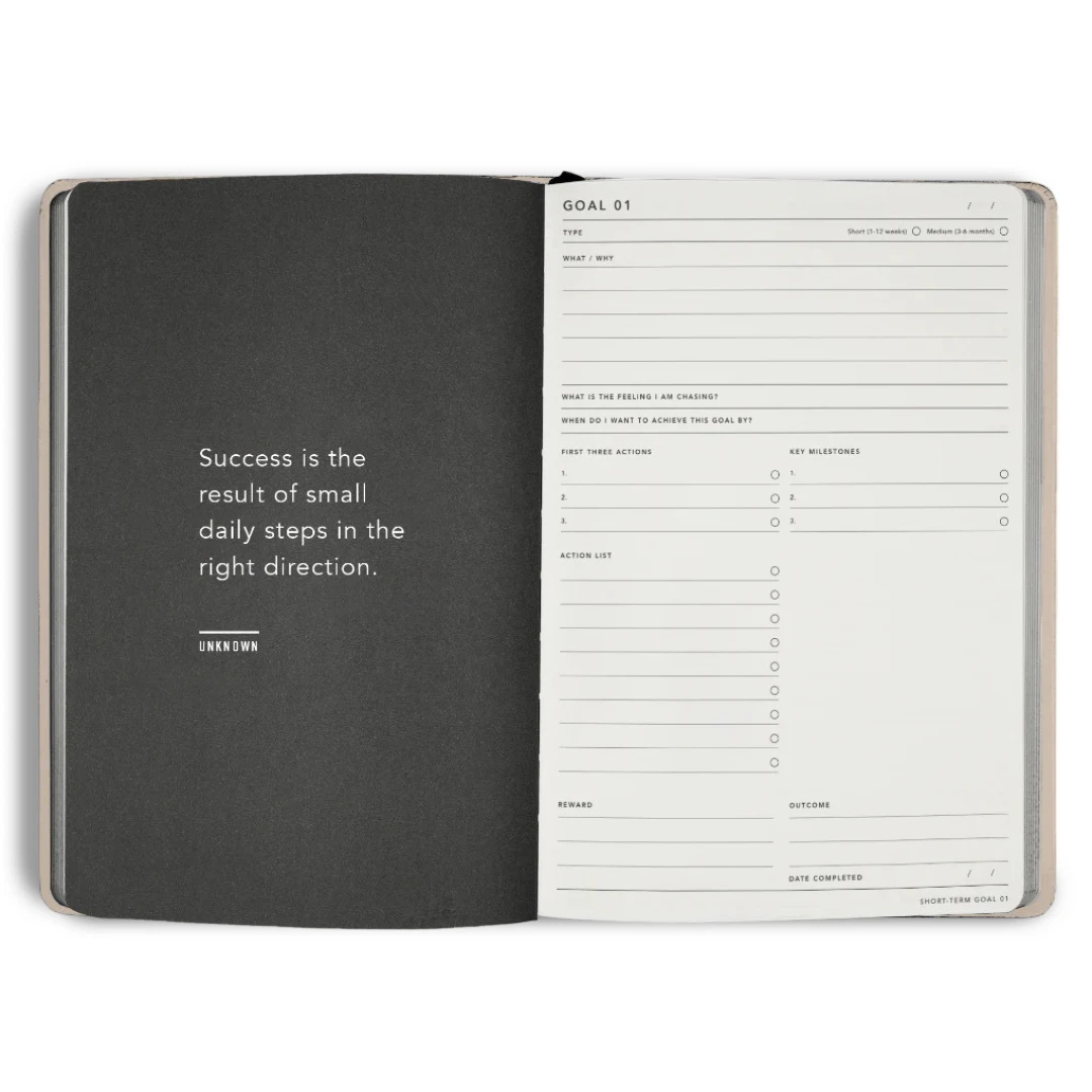 We created this planner because we believe that big life changes are the result of small actions taken every single week. We designed it as a tool that not only helps you stay organised and productive, but also encourages you to dig deep and uncover your purpose, dream up your vision, and cultivate a positive mindset for your future. Think of this diary as your personal life coach that keeps you focused on your goals, encourages you to create positive habits and empowers you to take action towards achieving your dreams.