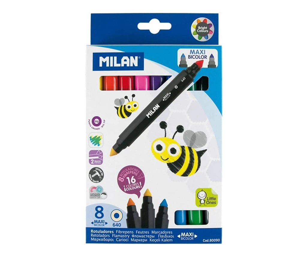 Each Milan Maxi Bicolour Fibrepen features two tips with two different colours. Their thick tips can be used to create lines from 1mm to 3,25mm thick. The ink used is water-based.