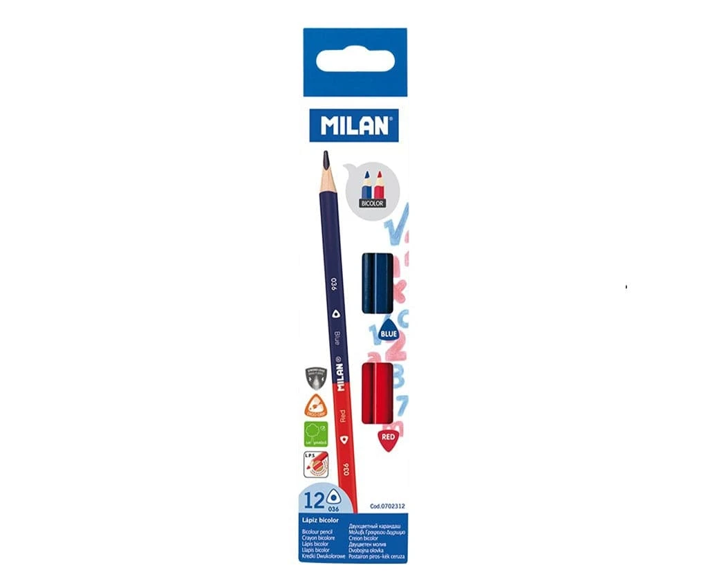 Milan Bicolour Red-Blue Triangular Pencils (12 Pencils)