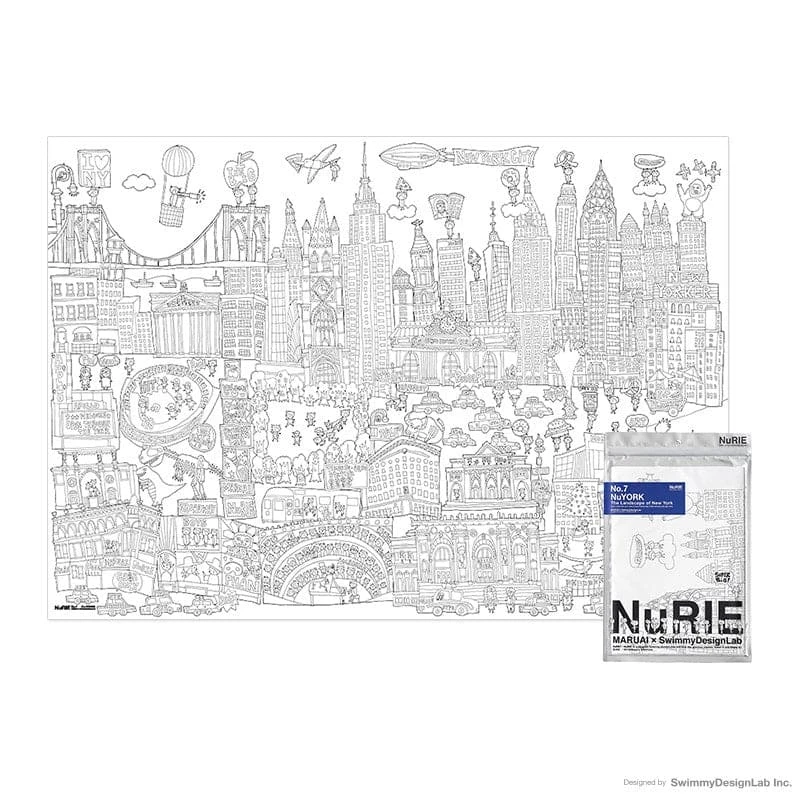 Densely illustrated, with tall buildings and a big apple. NuRIE’s x SwimmyDesignLab have New York City down to a tee, and illustrated it on this colouring in map of New York in their instantly recognisable imaginative style.