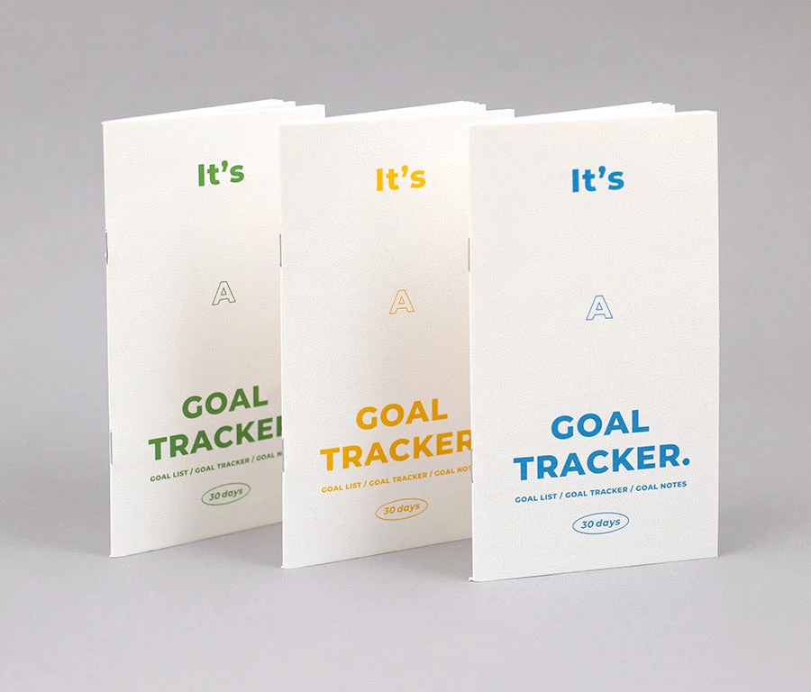 The Goal Tracker Book comes in three versions, differentiated by the colour of the text on the white front cover – green, yellow, or blue. With 48 pages of purposeful content, this book is the perfect tool for anyone looking to bring structure and motivation to their goal setting.