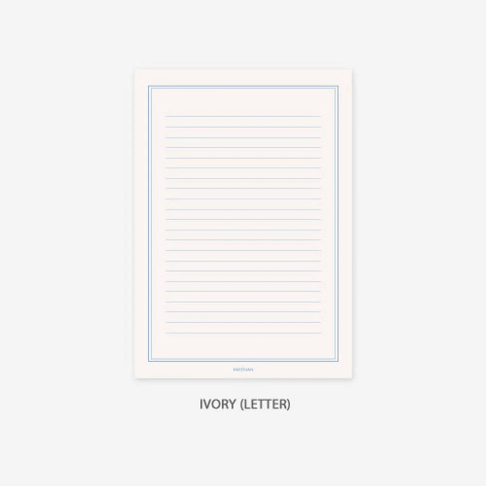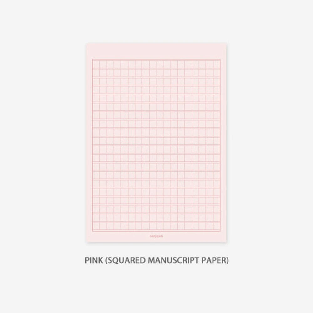 - Four paper types to choose from: Grid (pink, yellow), Line (yellow, blue), Wongoji (pink, beige), Letter (ivory, peach)