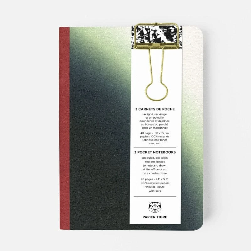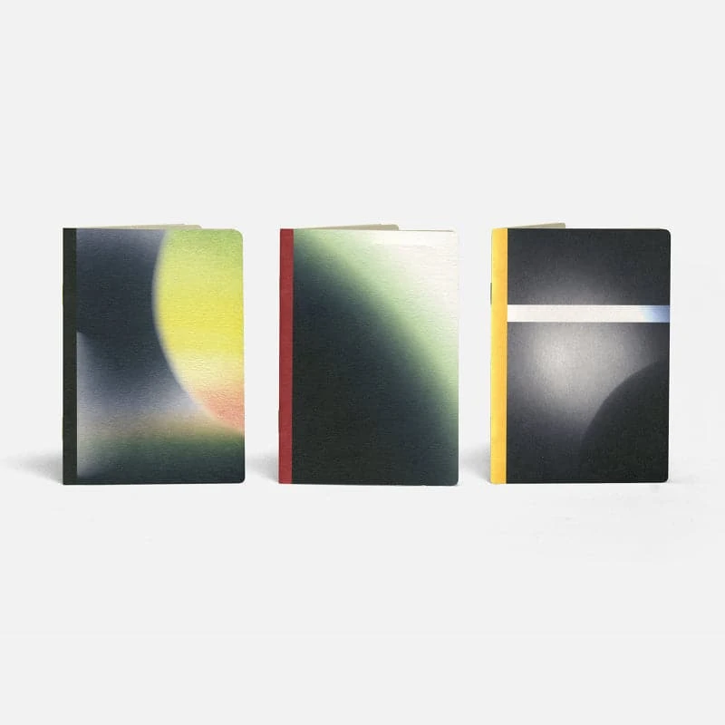 Papier Tigre is celebrating the 50th anniversary of the first step on the Moon with a collection of notebooks dedicated to space. With Lighting effects, suspended forms, shadows, distortion of everyday objects and sci-fi movies, we invite you to explore new territories, new realities. Infinity is now at your fingertips. This set contains 3 pocket notebooks – one ruled, one plain and one dotted – for writing and drawing, at the office or up on a chestnut tree.