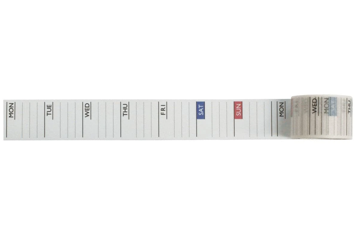 Add an at-a-glance weekly planner to your diary pages with this really useful masking tape from Japan. The layout starts from Monday (at the top) to Sunday, and the weekend days are usefully coloured.