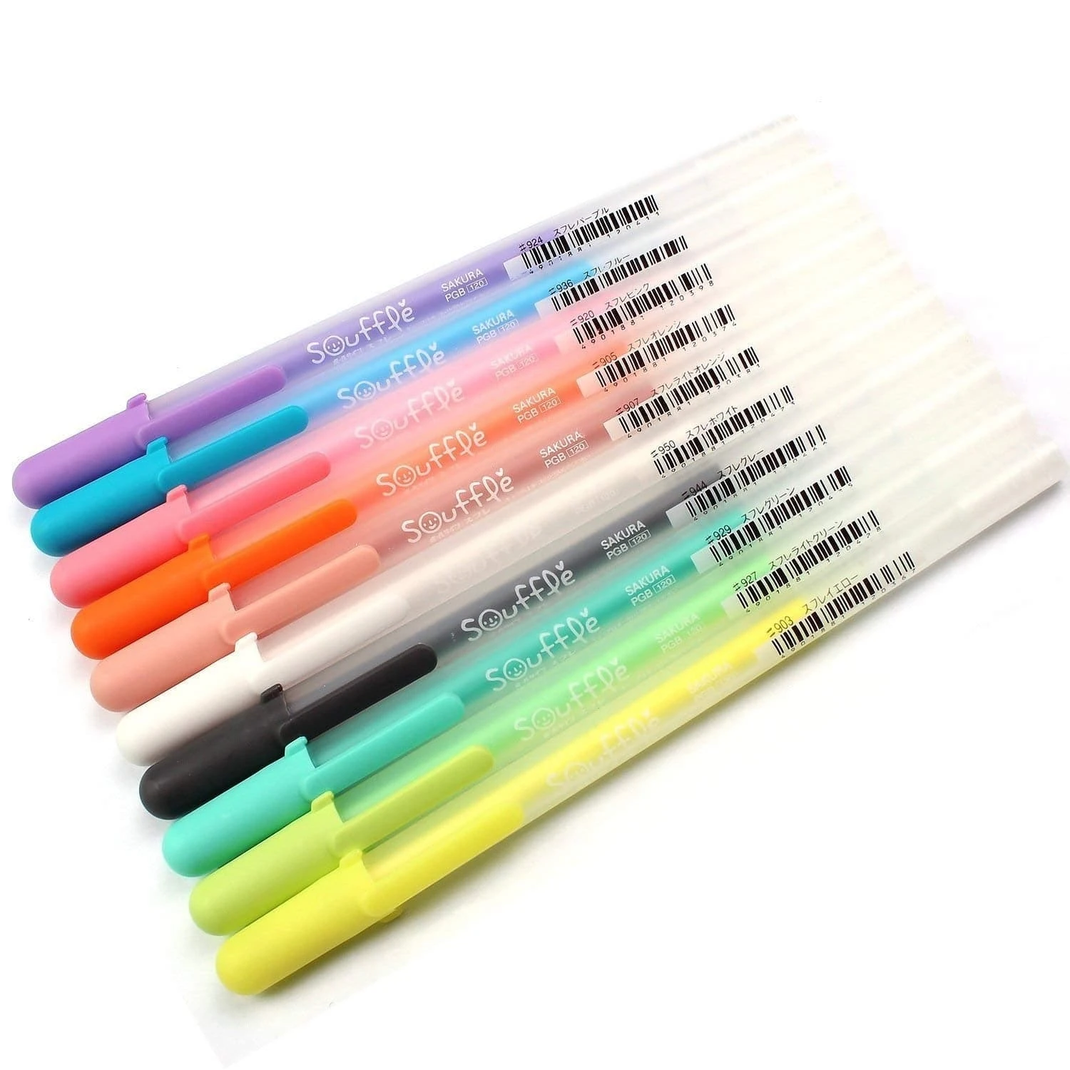 The Souffle 3D gelly pens are exceptional writing tools that will allow you to add a third dimension to your creative DIY projects. The water-based gel ink features a special 3D effect leaving a raised ink line. The ink is odourless, non-toxic and waterproof. These special pens can be used on dark or light surfaces, including non porous ones such as plastics, coated papers, vellums, glass and acetate. The smooth 1.0 mm ball writes a 0.7mm line in opaque pastel colours.