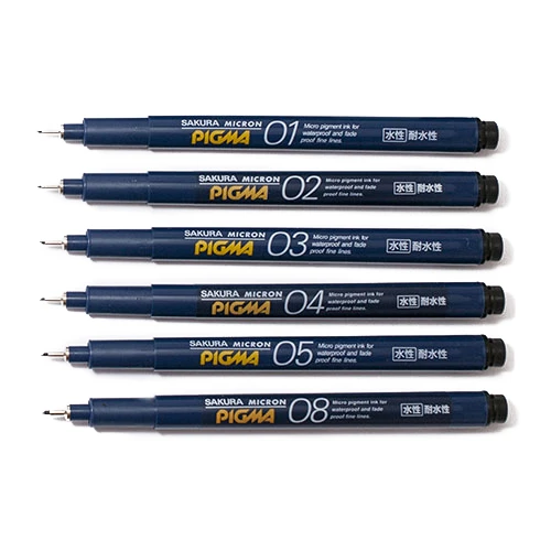 The Sakura Micron Pigma needle tip pen is a great choice for artists, illustrators, and writers alike. The patented smooth flowing Pigma pigment is not soluble in water and, once dried, does not bleed even if it gets wet.