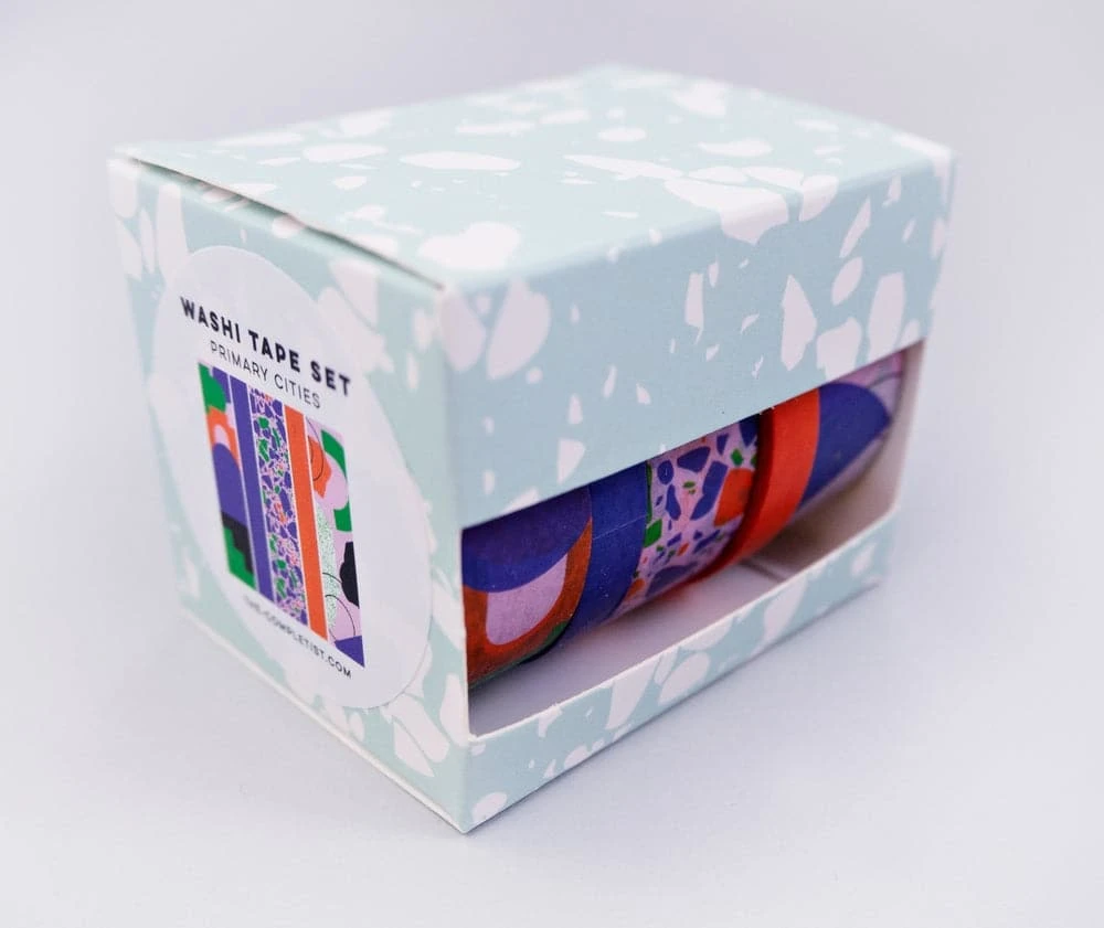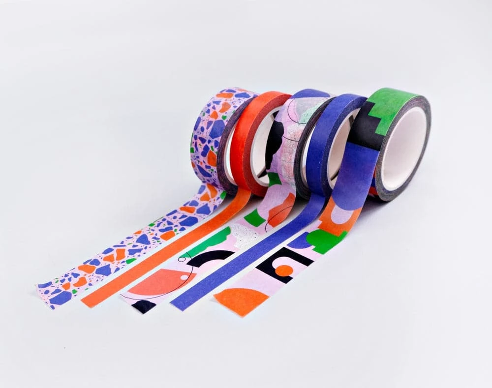 What’s better than 1 roll of washi tape? A set of 5 rolls of washi tape! this set features an abstract cities-inspired prints in pastel colours and comes packed in a cardboard box (plastic free!) Perfect for all your bullet journalling or decorative paper needs.