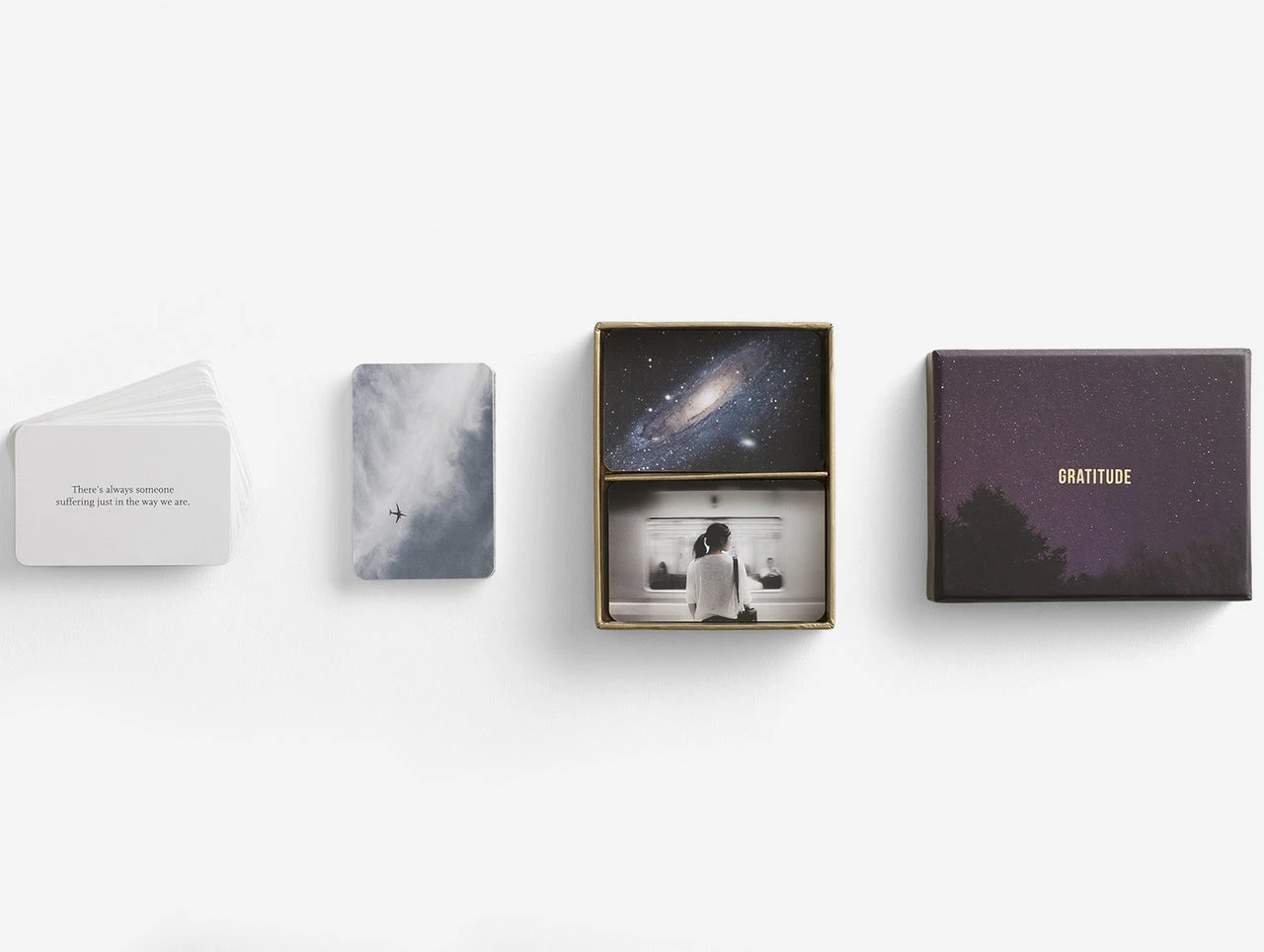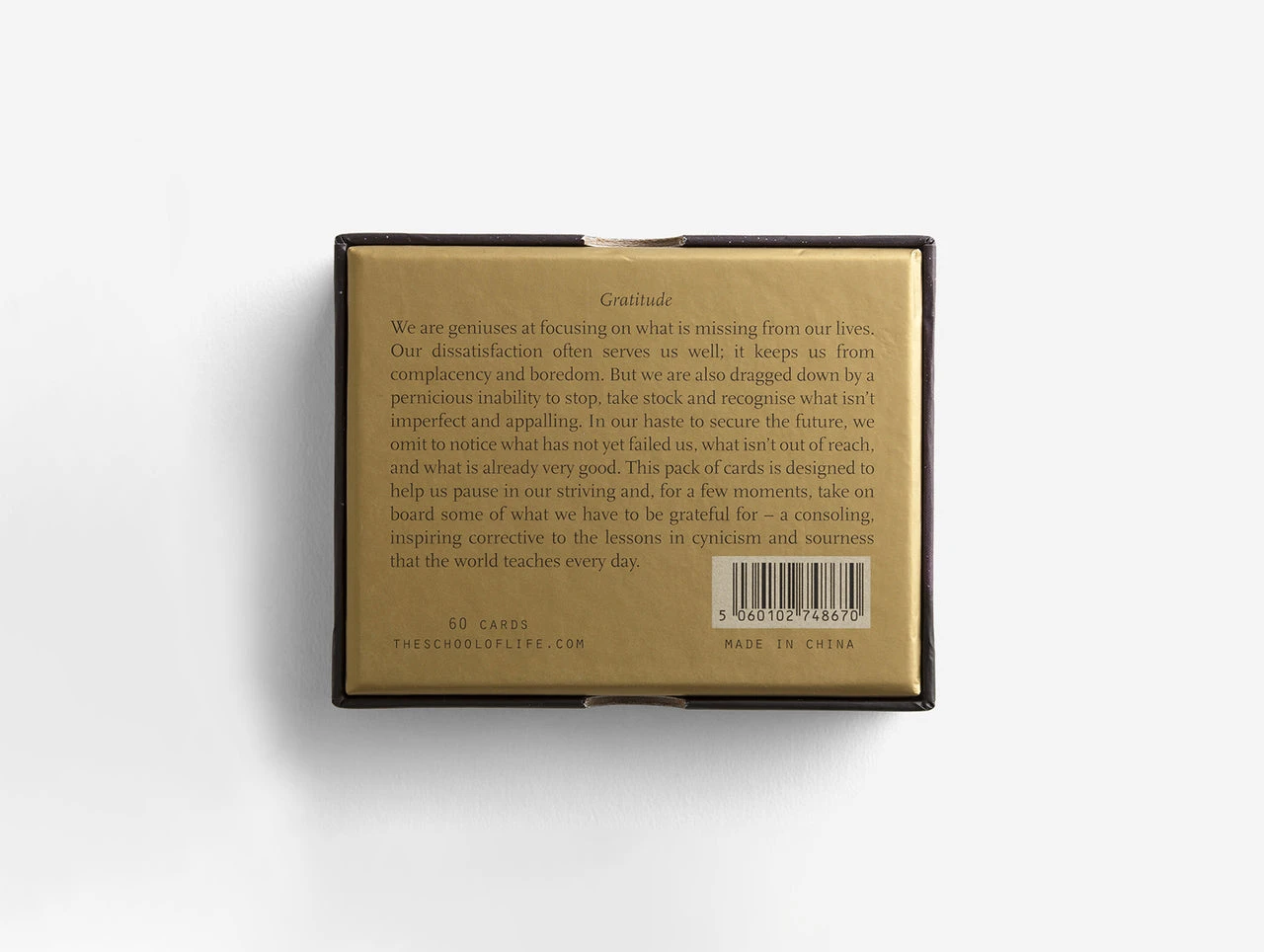 In our haste to secure the future, we omit to notice what is already very good. This pack of cards is designed to help us pause in our striving and, for a few moments, take on board some of what we have to be grateful for – a consoling, inspiring corrective to the lessons in cynicism and sourness that the world teaches every day.
