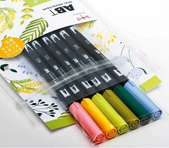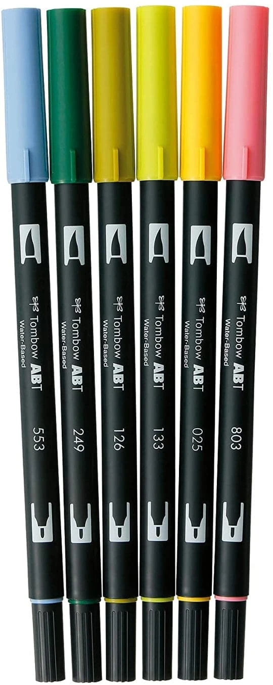 Tombow ABT Dual Brush Pens are double sided. This means that each pen has two sides, one brush pen and one 0.8mm fine tip. This set contains 6 different coloured pens.