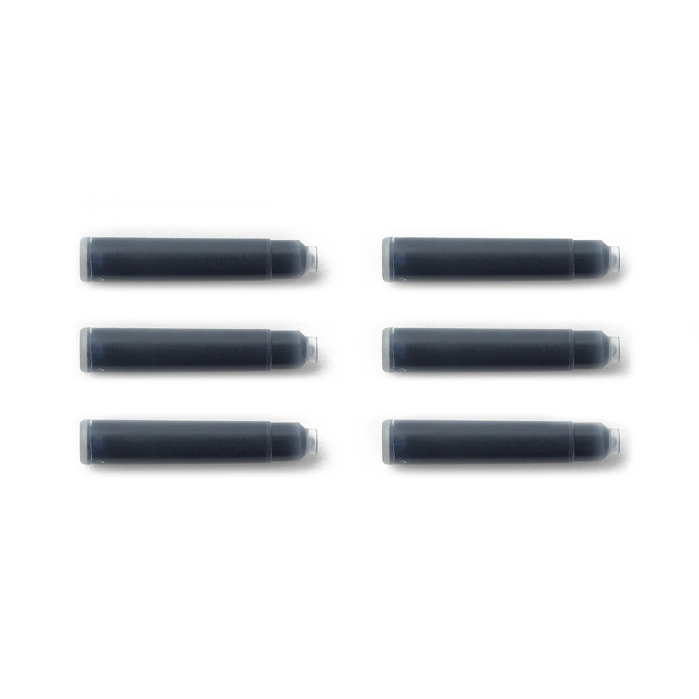 6 Ink cartridges for the BRASS Fountain Pen. Available in black and blue.