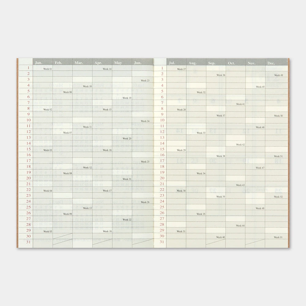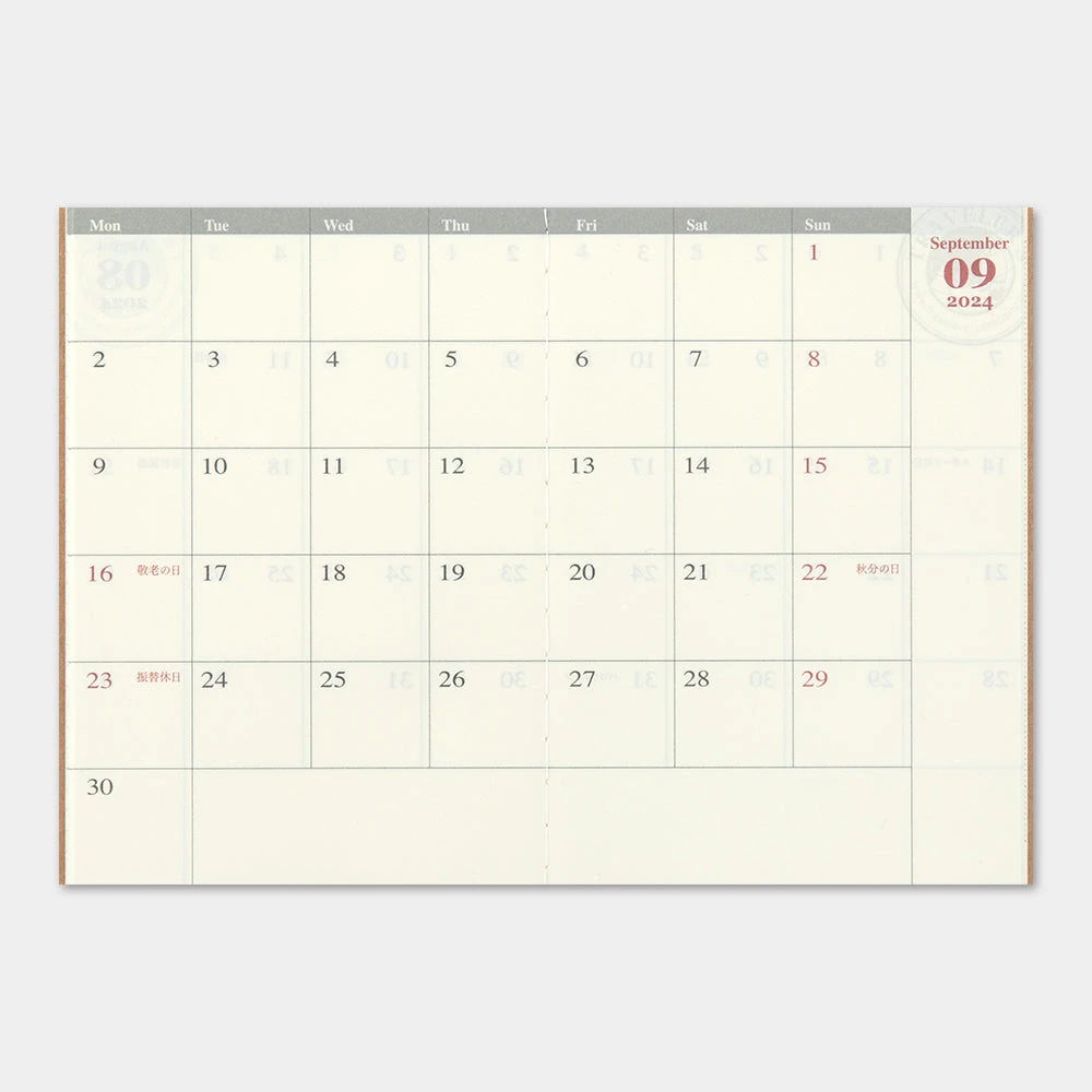 Stay organised and keep track of your monthly plans with this essential Traveler’s Notebook Passport Size monthly refill. Designed in a compact passport size, it’s the perfect companion to carry wherever you go, making it an ideal sub-diary for your Traveler’s notebook. Whether you want to remember anniversaries, birthdays, or even track your daily body temperature and weight, this monthly block diary has you covered.