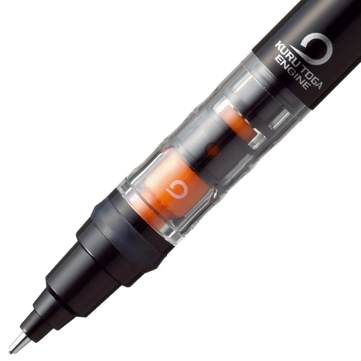 Elevate your writing experience with the Uni Kuru Toga Pipe Slide Mechanical Pencil 0.5mm. This cutting-edge mechanical pencil features a sliding metal sleeve to protect the lead and a revolutionary Kuru Toga engine that keeps the tip forever sharp. Offering a unique fast-rotating action, this model keeps your lines consistently fine and precise. Watch the Kuru Toga engine in action through a transparent window as your pencil stays sharp stroke after stroke. Prefilled with HB Uni Nano Dia Lead, your writing and sketching are about to get a whole lot better.