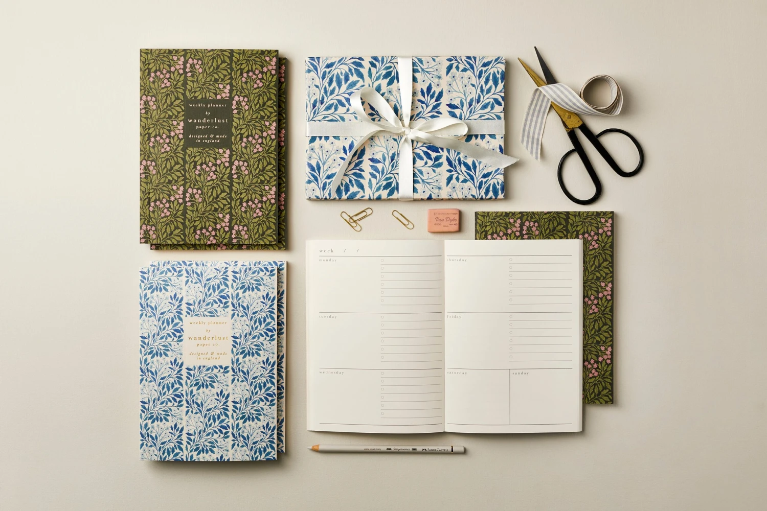 Proudly designed and manufactured in England, the Wanderlust Green Flora Weekly Planner exemplifies quality craftsmanship and attention to detail. Its durable construction and timeless design make it an ideal companion for staying organised and inspired throughout the year.