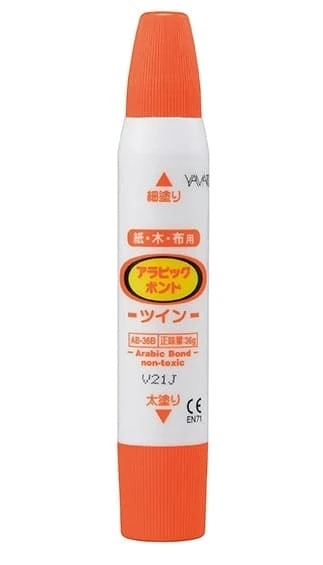 Yamato’s Japanese Arabic-Bond glue is ideal for use on both wood and paper. The tube is double-sided with one wide nozzle and one slim nozzle for more precise application. Applies white and dries clear, making it ideal for crafting projects where the placement of the glue needs to be visible until it dries. Yamato’s Arabic-Bond glue is non-toxic and suitable for younger children – although adult supervision is always advised – when crafting or completing school projects. The applicator heads are both made using flexible rubber and each tube contains 36g of glue.
