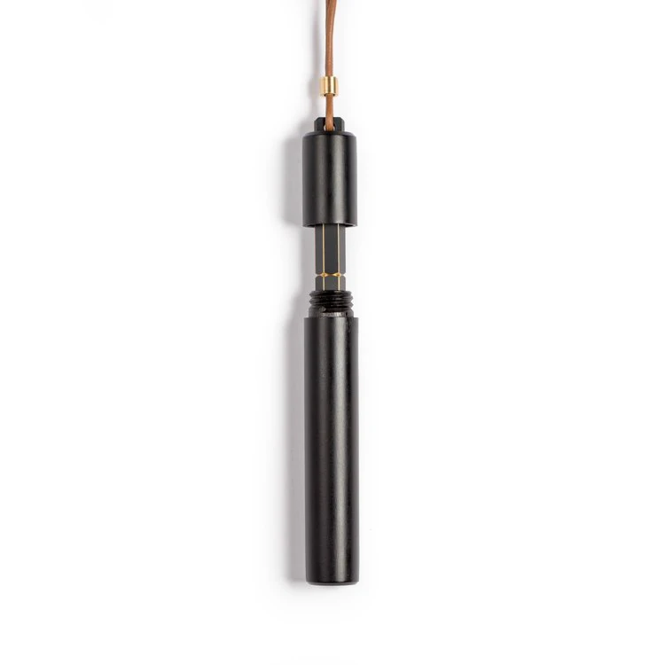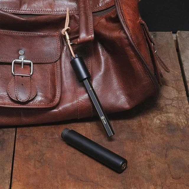 The black ‘brassing’ version of this portable pen is inspired by the designer’s love of vintage cameras and draws on the worn ‘black over brass’ that comes with time and use. You can create a personalised brassing effect by removing the paint on the surface using the sandpaper sheet provided in the box.