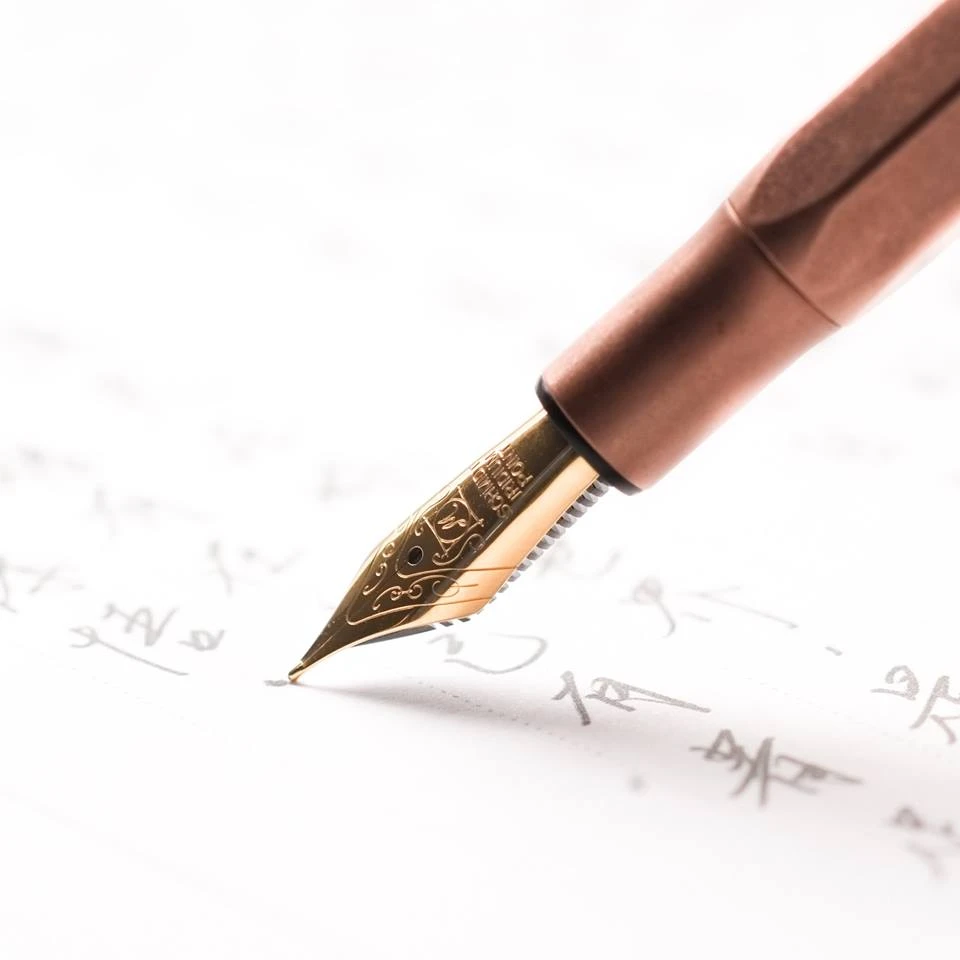 Solidly made, steady and smooth, this stunning pen is elegantly simple and an absolute pleasure to write with. Available in black and copper, fine and medium sized nib.