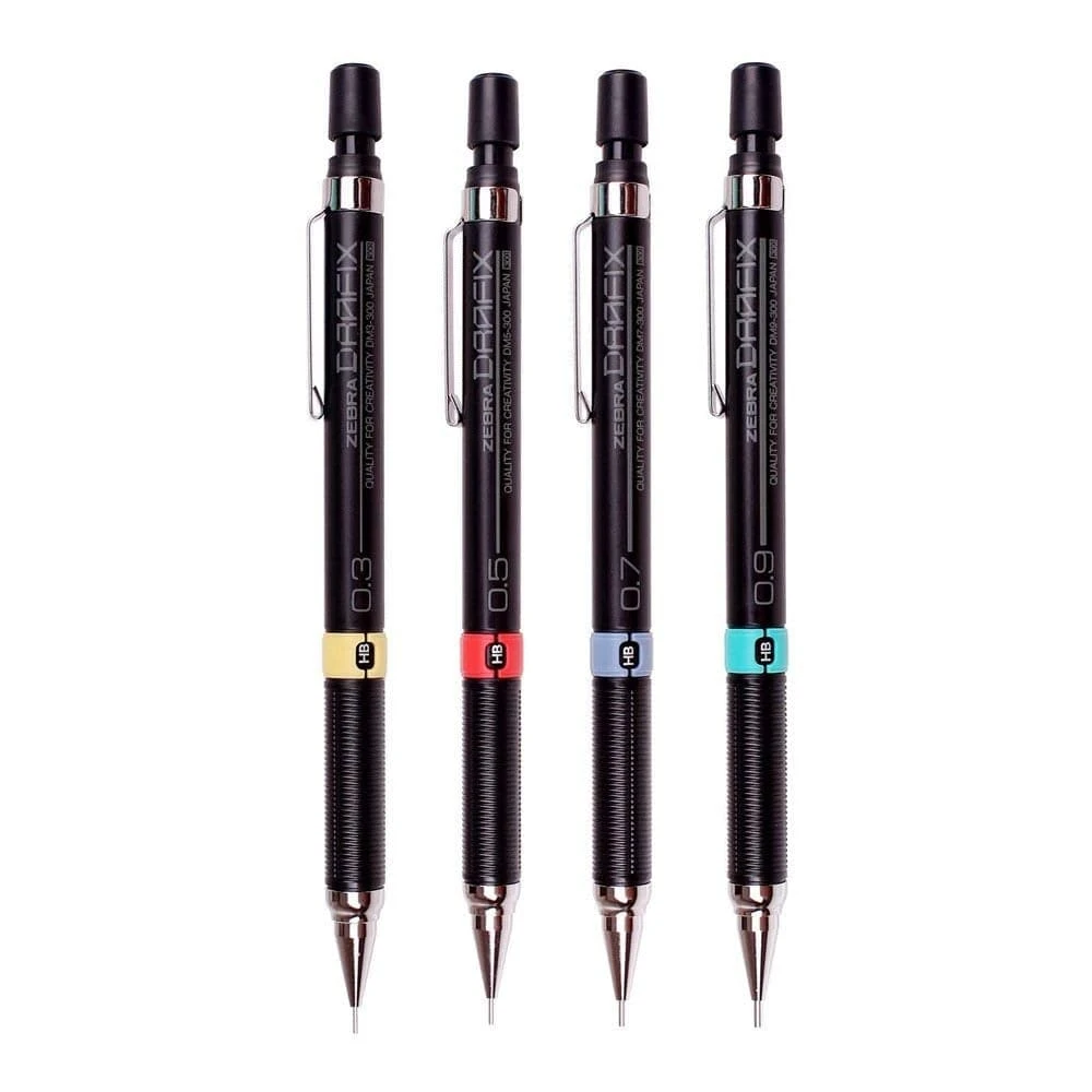 The Zebra Drafix Mechanical Pencil is available in 4 lead sizes from 0.3 to 0.9mm.