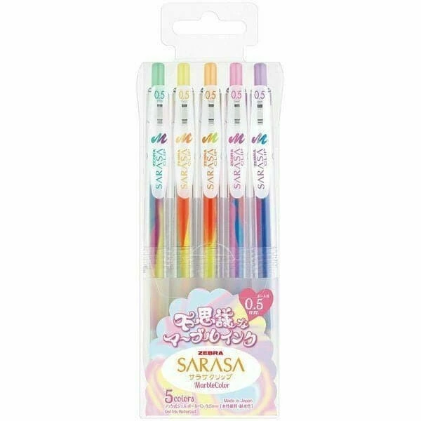 The Zebra Sarasa Ballpoint 0.5mm Marble Colour mix three different gel ink colours in the barrel.